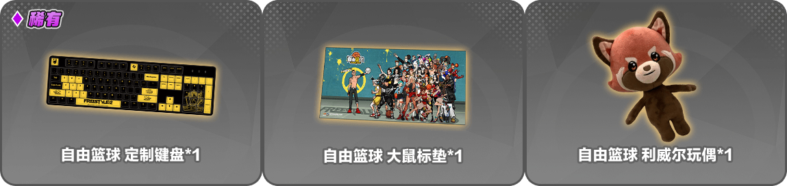 活动奖励:自由篮球定制键盘、自由篮球大鼠标垫、自由篮球利威尔玩偶